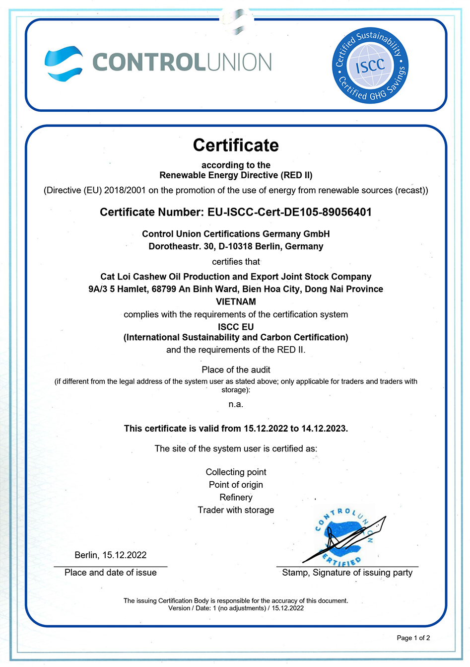 CAT LOI CASHEW OIL PRODUCTION & EXPORT JOINT STOCK COMPANY